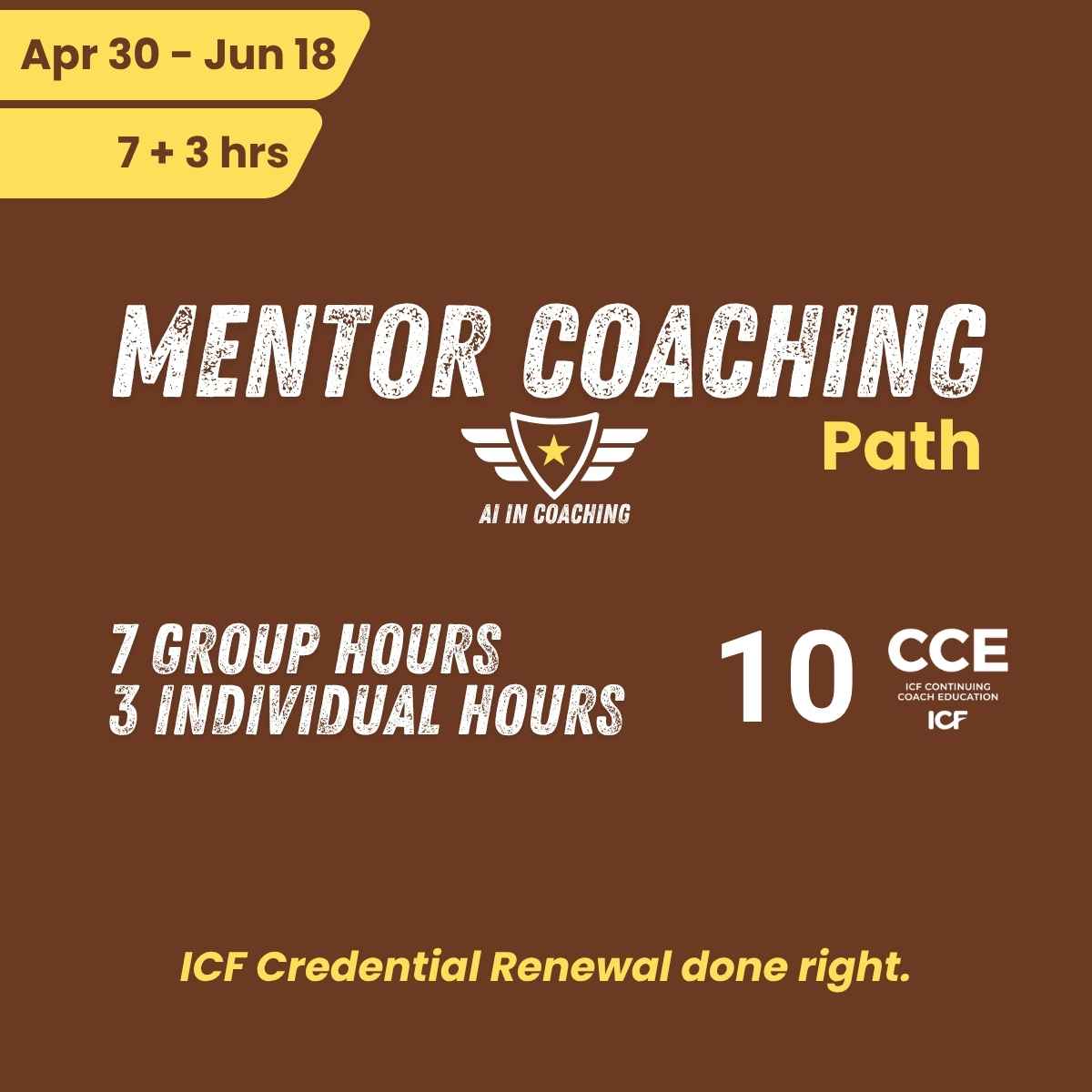 - 10 mentor coaching hours from the ICF Mentor Coaching Path